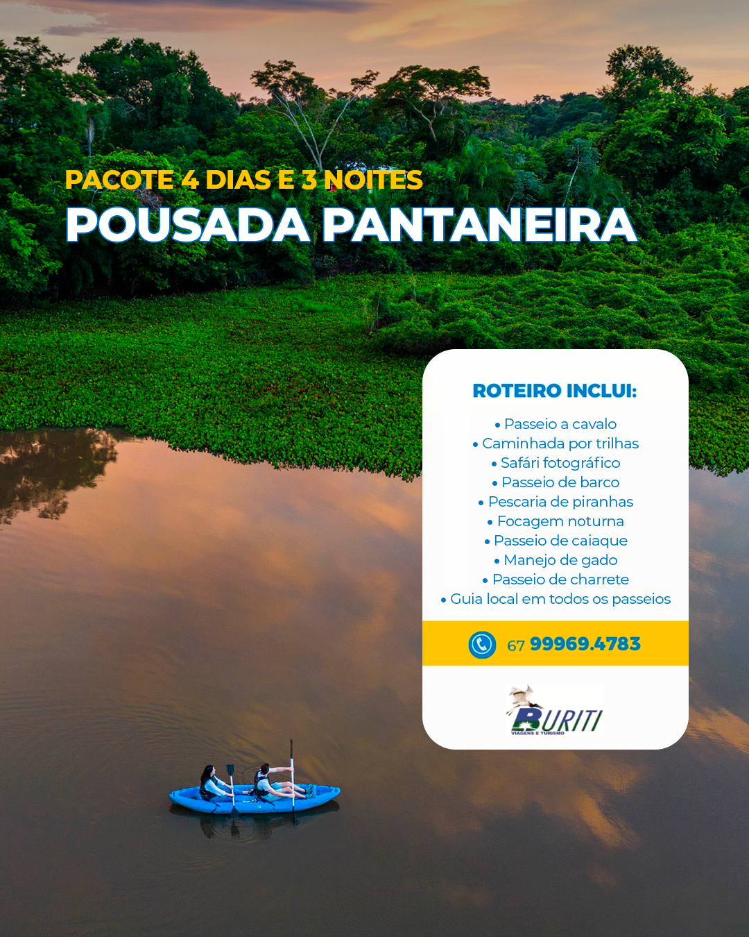 Descubra o Pantanal em sua forma mais autêntica, com conforto, gastronomia pantaneira e atividades diárias que proporcionam conexão com a natureza e cultura local.